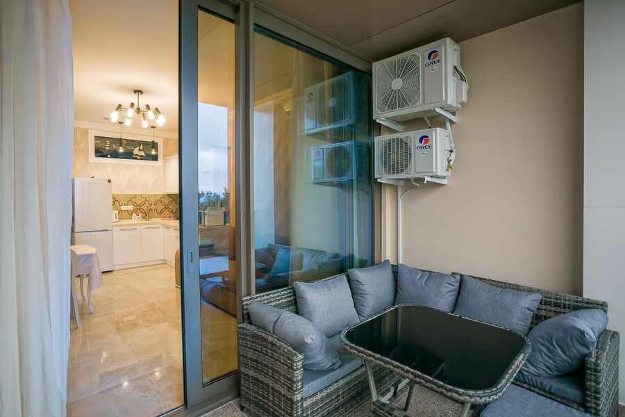 №15, 4 этаж, Скай1 Основных мест: 4Новые апартаментыПлощадь (м2): 56КондиционерУтюгШкаф/ГардеробСветонепроницаемые шторыБалконСобственный санузелХалатыТапочкиДушФенСтиральная машинаКухонные принадлежностиМикроволновкаДуховкаХолодильникСтоловые приборыОбеденный столКофе/ЧайКофемашина/КофеваркаЧайникТелевизорКабельное ТВWiFiВид на мореВид на горыСад/ЛесЗабронировать