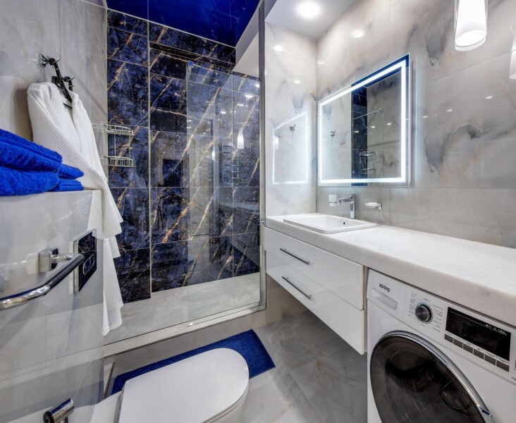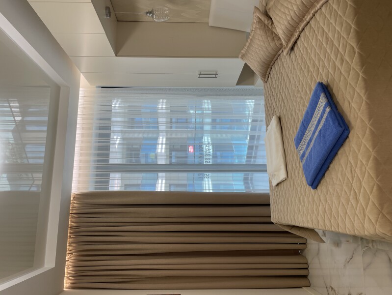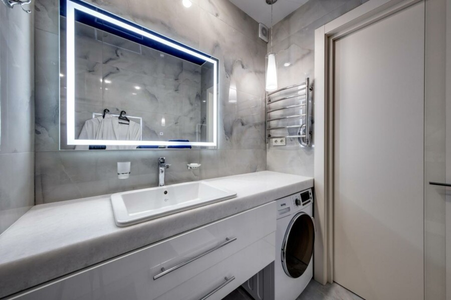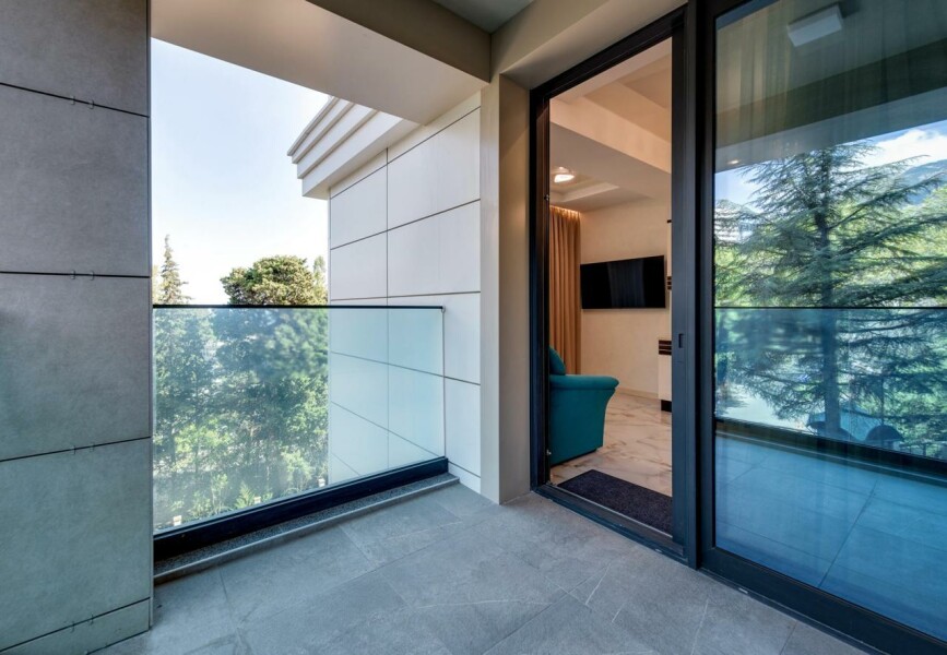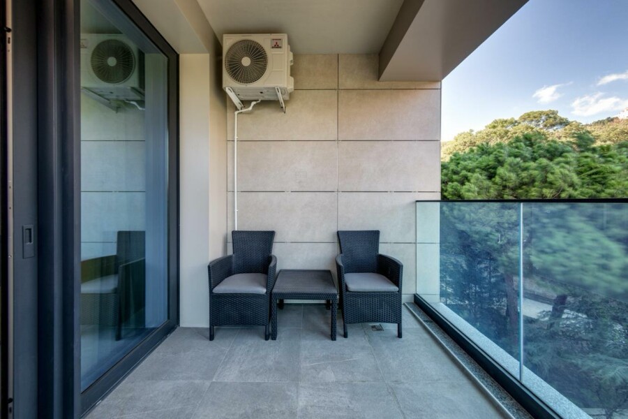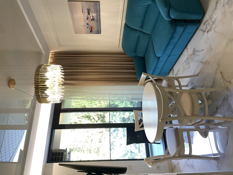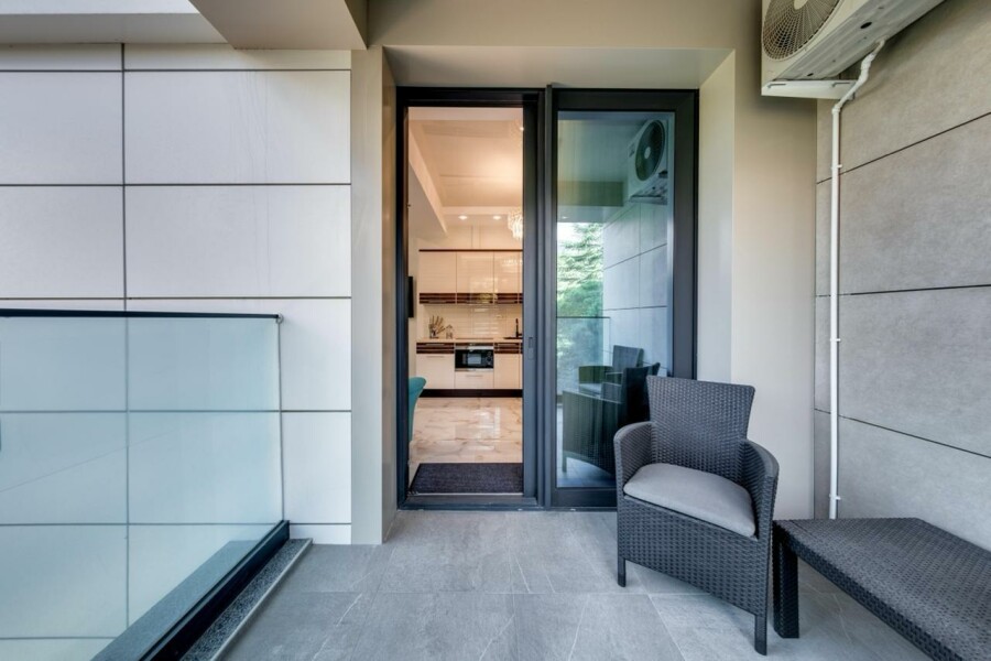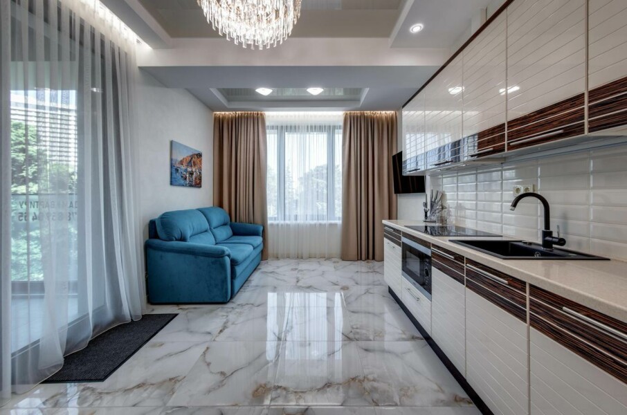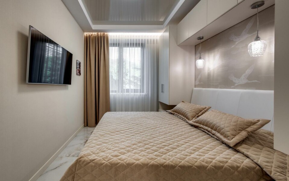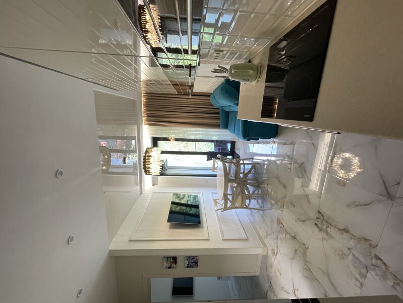 Двухкомнатные апартаменты с дизайнерским ремонтом и панорамным остеклением, расположены на 3 этаже. В апартаментах встроенная мебель и техника, есть посудомоечная машина. На балконе стоит мягкая мебель для комфортного время препровождения. В апартаментах установлен кондиционер в гостиной, горячая вода и отопление подаётся крышной котельной. Апартаменты идеально подойдут для размещения 4 человек. Кухня: обеденный стол на четыре персоны, кухня укомплектована вытяжкой, микроволновой печью, холодильником, электрочайником, набором посуды и всеми необходимыми комплектующими для приготовления еды. Гостиная: большой раскладывающейся диван, плазменный телевизор SMART TV с выходом в интернет, утюг, гладильная доска, пылесос. Спальня зона: двуспальная кровать шкаф, телевизор В стоимость аренды апартаментов входит: 2 комплекта постельного белья, набор полотенец для каждого гостя (руки, ноги, банное), Wi-Fi, средство для мытья посуды, туалетная бумага, жидкое мыло, стиральный порошок, SMART TV. Этаж: 3 Общая площадь: 45м2. Площадь балкон: 6 м2. Высота потолков: 3,2 м.