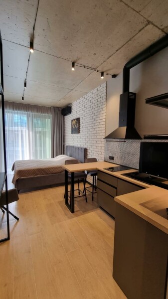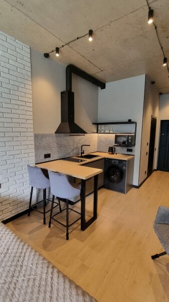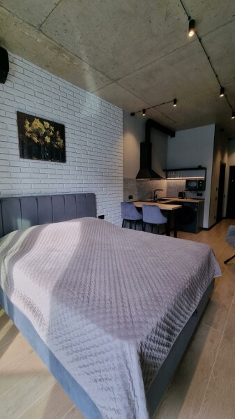 Студия c балконом в стиле LOFT. Апартаменты для размещения 2ч человек. С балкон вид на море